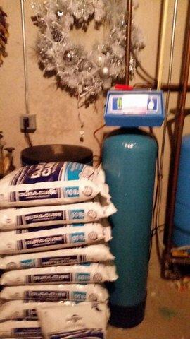 The homeowners called in to schedule their annual salt delivery. Our technican Shae delivered their salt and tested their water to see if the water treatment equipment was working properly. Shae made sure to stack the bags of salt nicely next to the brine tank for easy use.