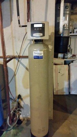 Mr. E has a service plan on his current softener. Every year we come out to his home to do the annual preventative maintenace on his water treatment equipment. Shae, our tech, delivered enough salt out to his home for the year and carried them all down to the homewoners basement. He also changed out the old salt in the brine tank.